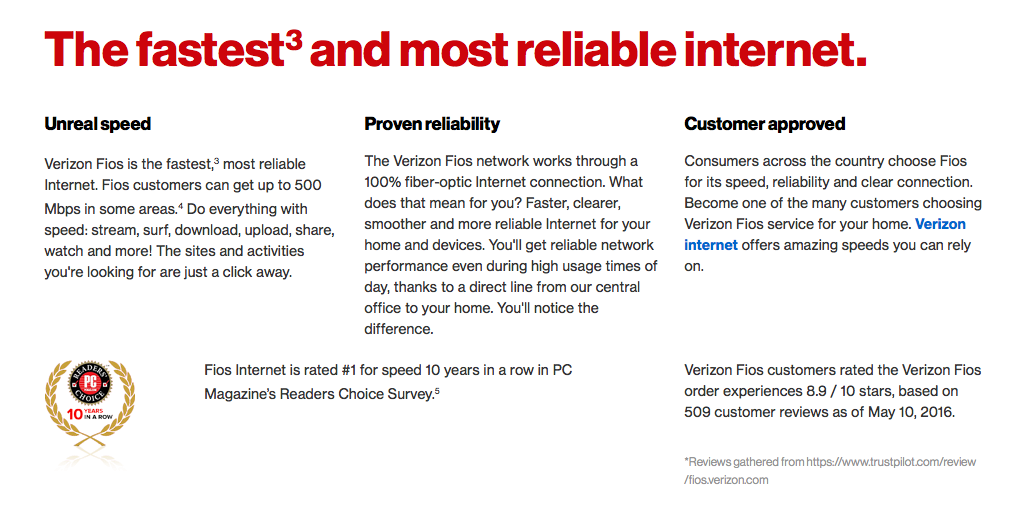 Verizon's ads and webpages made claims that Verizon had faster service with a higher-quality picture for its FiOS Internet service. NARB found that Comcast was correct in charging that Verizon was being misleading with its presentation of the information.