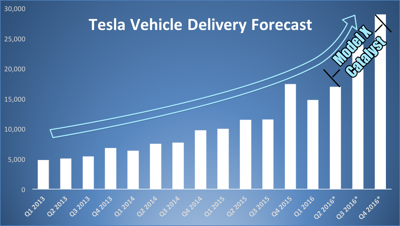 With Model X finally positioned to be a meaningful catalyst to Tesla's sales, deliveries should take off substantially during the second half of the year.