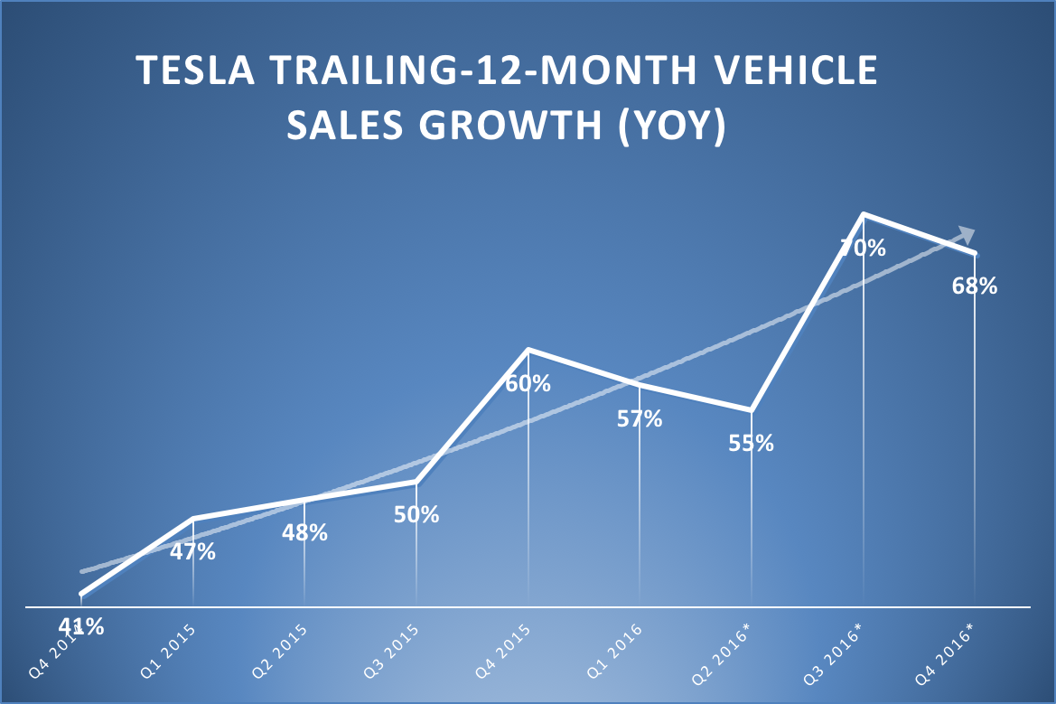 Impressively, for Tesla to achieve its full-year guidance, its year-over-year growth in vehicle sales will actually need to accelerate. Tesla was already growing trailing-12-month vehicle sales at rates beyond 50%. But this year-over-year growth is going to have move to rates above 60% for Tesla's full-year guidance to be achieved.