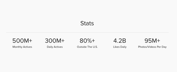 "Today, we're excited to announce our community has grown to more than 500 million Instagrammers -- more than 300 million of whom use Instagram every single day," Instagram said in blog post on Tuesday. "Our community also continues to become even more global, with more than 80 percent living outside of the United States."