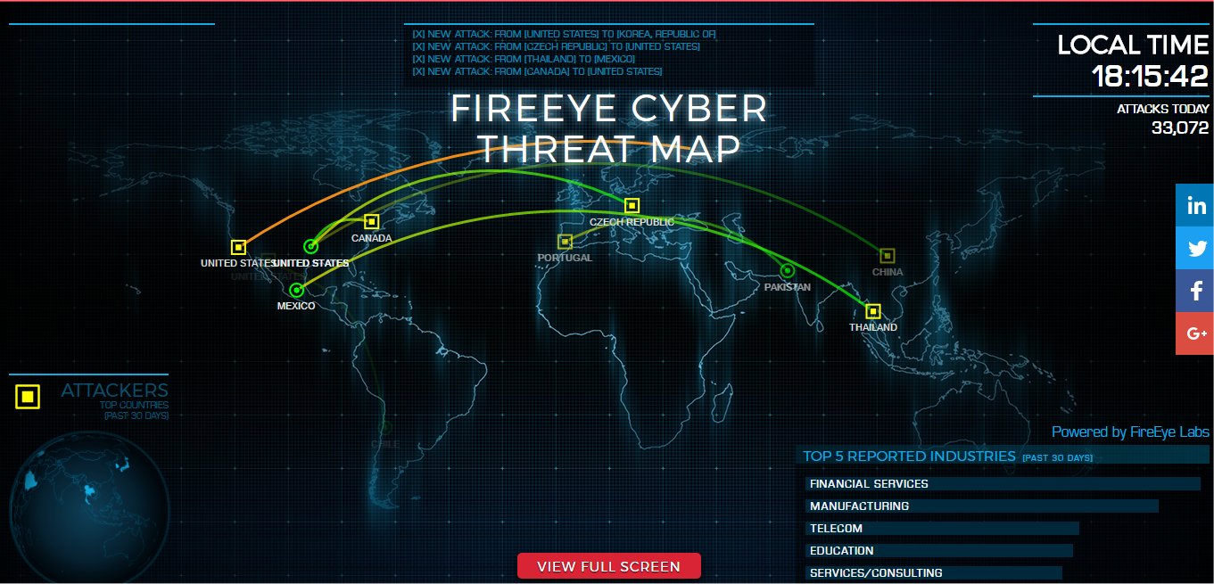 FireEye's real-time cyber attack map. Image source: FireEye.