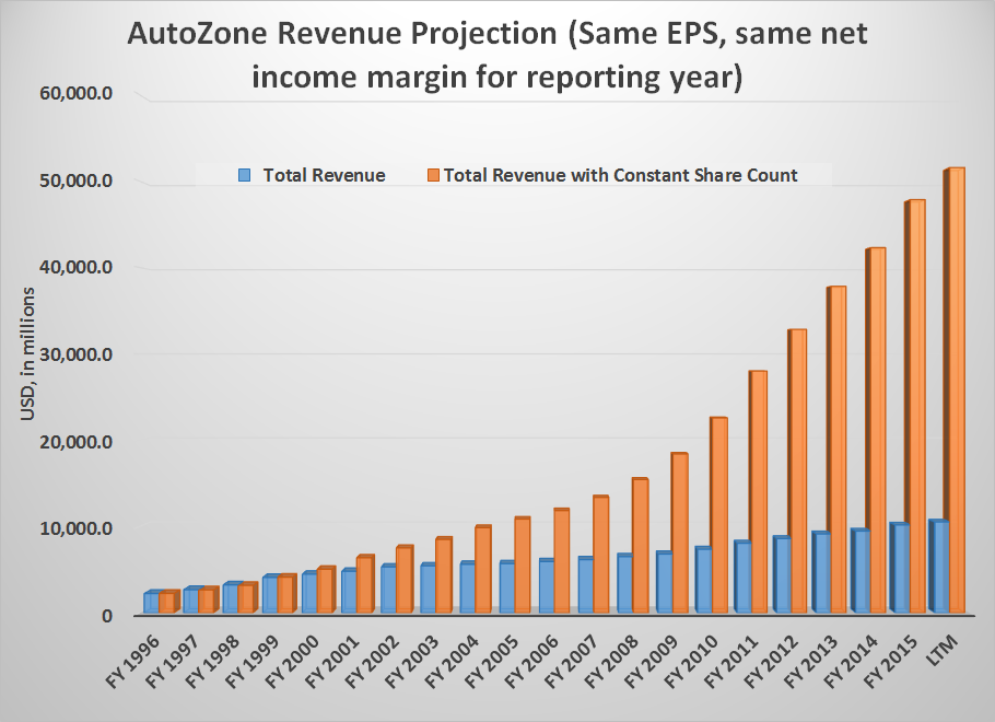 Here's what is significant about that $51 billion in revenue to meet today's earnings per share with a constant share count. That is close to double the total revenue that AutoZone and three of its largest competitors -- Advance Auto Parts, O'Reilly Automotive, and Pep Boys -- generated in the past 12 months... combined.