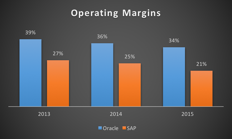 Both SAP and Oracle can be criticized for being late to the cloud-computing game. The hesitation was somewhat justified given the sacrifice it had to make to its high-margin on-premise business. Cloud solutions aren't as profitable as on-premise software, but the software juggernauts had to move aggressively to changing customer demands. However, it comes with a sacrifice to margins.