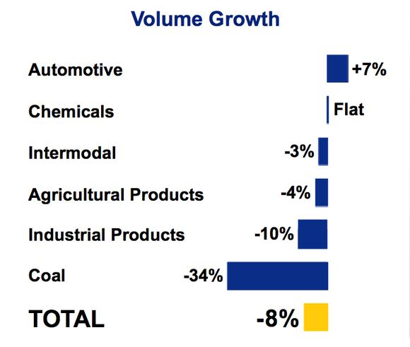 The company's progress in regard to cost-cutting can also be seen its operating ratio -- a key metric defined as operating expenses divided by operating revenues -- which was up only 0.3 percentage points compared with the first quarter of 2015 despite the sharp drop in volume.
