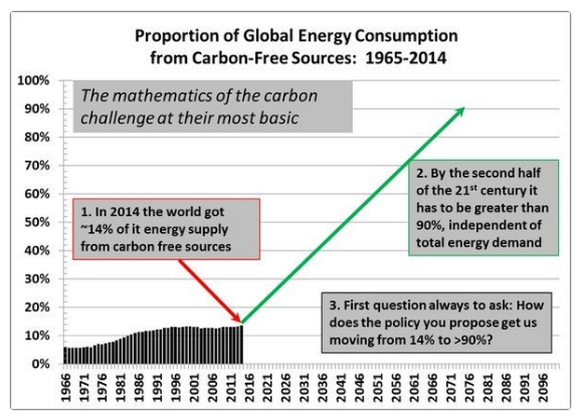 Pielke used historical global energy data from BP to illustrate where we are today and where he estimates we need to be in 2100: