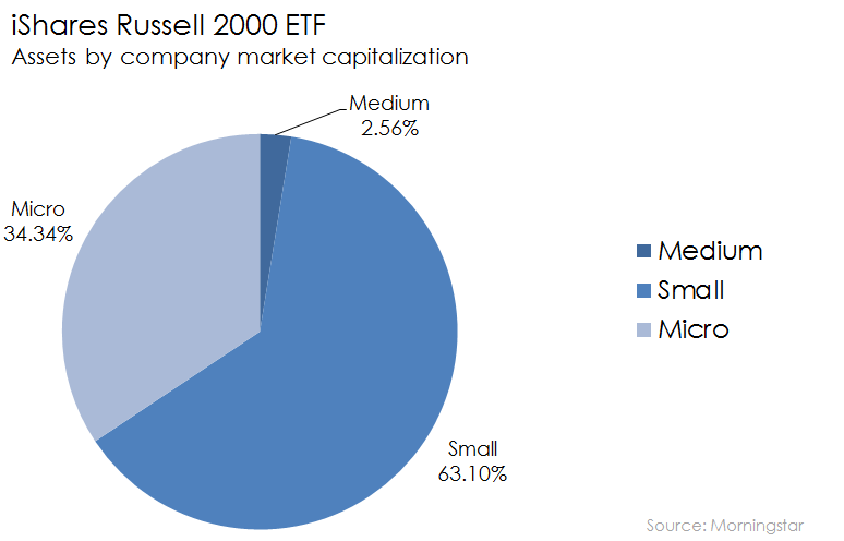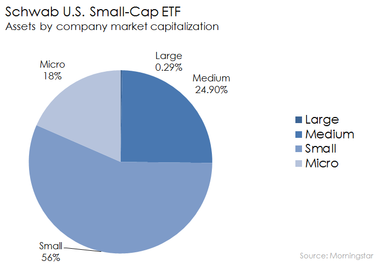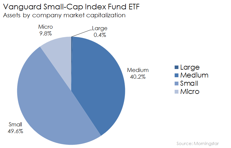 Its portfolio puts it right in the middle of Vanguard's and iShares' funds, with about a quarter of its assets invested in mid-cap stocks, and the remainder invested in small- and micro-cap companies. (Remember, iShares' fund has very light mid-cap exposure, whereas Vanguard has about 40% of assets tied up in mid-cap stocks.)