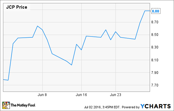 After closing May at $7.29, the company's stock began to climb when it announced its intention to refinance the loans on June 10. The share price began to climb again when J.C. Penney reached a deal to close the refinancing on June 23. Shares finished June at $8.88 for a nearly 14% gain, according to data from S&P Global Market Intelligence.