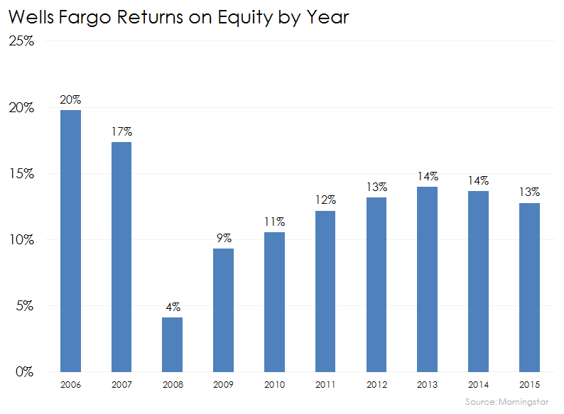 Buffett and Munger clearly see the bank as a safe place to put capital to work to achieve an attractive return. In the 10-year period since 2006, a period that includes the financial crisis, Wells Fargo has earned a double-digit return on its equity in all but two years, 2008 and 2009. It was profitable in every single year during the past 10 years.