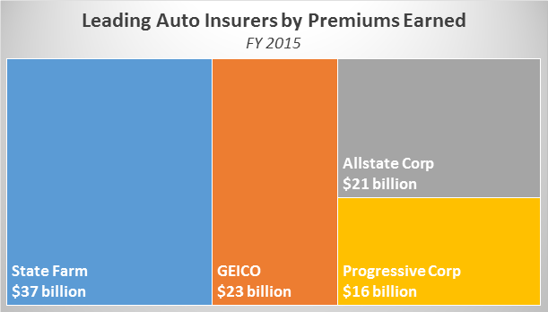 These four companies dominate the market in large part because of their ability to write policies for cheap. Buffett's quote above explains why -- people need their cars, and insurance is a legal requirement of driving. Insurance does not impact the experience of driving or the ability to get from point A to point B. Consumers don't ask, "Which insurance company will make my drive faster and more enjoyable?" Instead, they ask, "What insurance company will give me the coverage I need with the least cost and hassle?"
