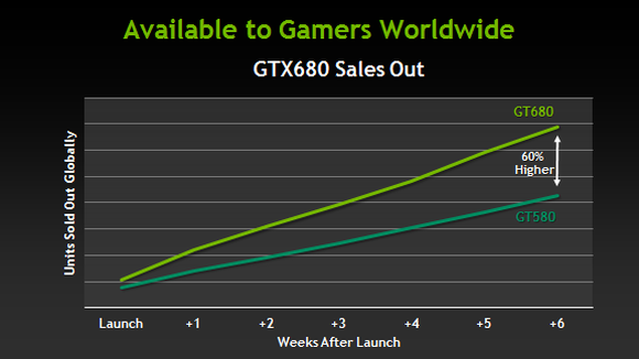 He told the audience that NVIDIA shipped 60% more GeForce GTX 680s in the six weeks after the product launched than it did of the prior-generation GTX 580 in the six weeks following its launch.