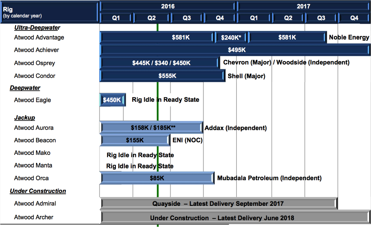 Atwood touts its relatively young, highly modern fleet that can pull in high day rates, but it simply doesn't matter how effective a rig is if it sits idle.