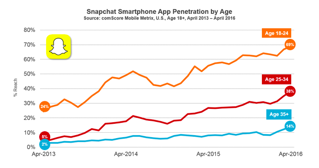 As a new report from researcher comScore confirms, "Snapchat isn't just for teens and college-age adults anymore," a claim the company backs up with compelling amounts of cold, hard data.