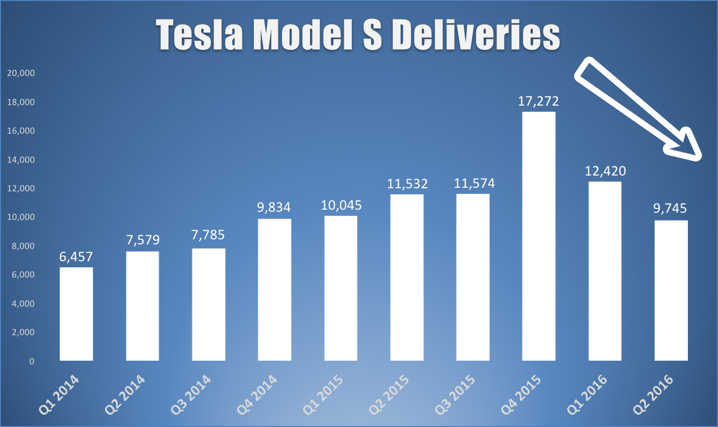 Despite declining Model S sales, Tesla has been able to maintain year-over-year growth in total vehicle sales during this period thanks to the September launch and subsequent production ramp of Model X. But the severity of Tesla's declining Model S sales means that even with increasing Model X production, Tesla's total vehicle sales are actually declining on a sequential basis recently. In Q1 and Q2, Tesla's total vehicle sales declined 15% and 3%, respectively.