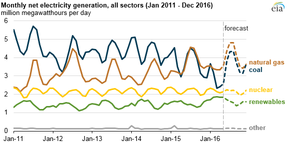 But over the long term, it's the fact that investors, banks, and utilities have lost faith in coal that will lead to a further decline. A decade from now, coal could be a very small player in the U.S. energy picture.