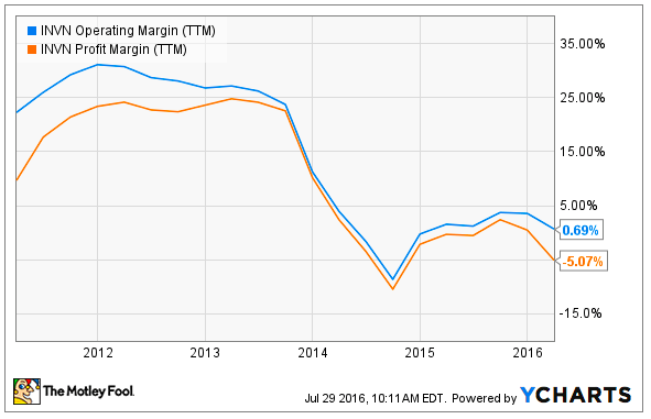 The last few years have been quite a ride for InvenSense investors. The company hit a high of about $22 per share in 2012, and then surpassed that in July of 2014 before starting its precipitous fall. It now sits around $7 per share. In percentage terms, the stock price has fallen nearly 73% from its high in 2014.