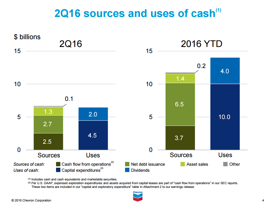 Chevron's earnings don't look good, but they are skewed by some pretty large charges that hampered any chance at a profit. Management has stressed cost management and getting to cash flow neutral by 2017, but it's going to take a lot more work -- or a big assist from oil and gas prices -- to get there.