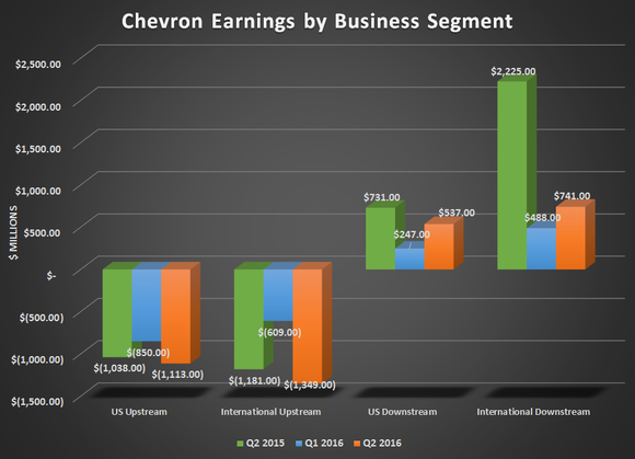 One thing to keep in mind when comparing this quarter to the same quarter last year is that the company did net a $1.6 billion gain in the second quarter of 2015 from the sale of its Caltex Australia assets. If we strip out that gain from last year, then its international downstream earnings were just $625 million.