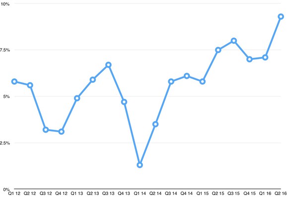 Aside from the 2014 earnings dip related to the recall mess, GM's quarterly pre-tax profit margin has been trending upward for several years. Last quarter's was a record. Data source: General Motors.