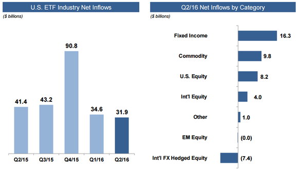 The image above, which appeared in the company's quarterly presentation, shows that while ETFs as a whole continue to attract AUM, hedged equity ETFs -- WisdomTree's largest fee generators -- lost more than $7 billion of AUM industrywide in the second quarter.