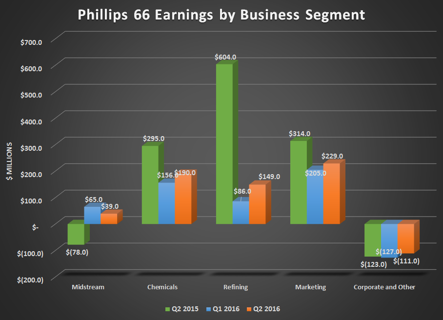 One of the things CEO Greg Garland really stressed in the company's conference call was its more diverse business model. Even though Refining struggled, Phillips 66 showed that it pays to have assets in Midstream & Marketing instead of just pure refining, like other independent refiners.