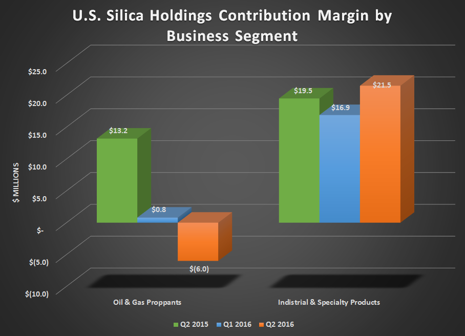 There has been a recurring theme with US Silica's earnings results recently. For several quarters now, the company's industrial and specialty products segment has been a relatively reliable source of earnings while its oil and gas proppant segment continues to wade through the decline in drilling activity across the U.S. This quarter, it was especially pronounced as oil and gas' contribution margin swung into the loss column while its industrial and specialty products had another standout quarter.