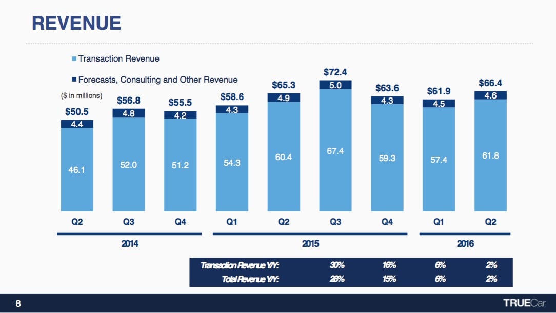Likewise, TrueCar's transaction revenue was up just 2% year over year.