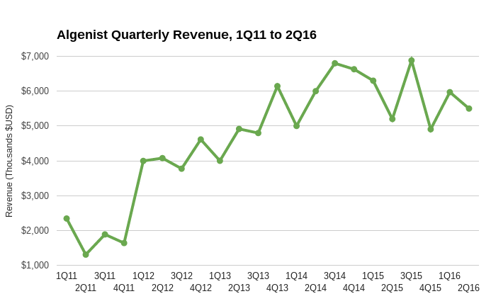 Some investors may be wondering why TerraVia parted ways with a majority stake in Algenist for only $20 million to Tengram. Isn't it a high-flying brand growing year after year? Doesn't the future potential represent revenue totals much greater than where the brand sits today? As always, it's a bit complicated, but the numbers have shown that Algenist was having problems growing for quite a few quarters. That's not to say that the brand is done growing, but whatever Solazyme/TerraVia was doing simply wasn't working.