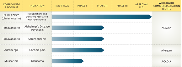 PDP is an important indication for ACADIA, but the company isn't stopping there. Here's a look at the company's pipeline of projects.