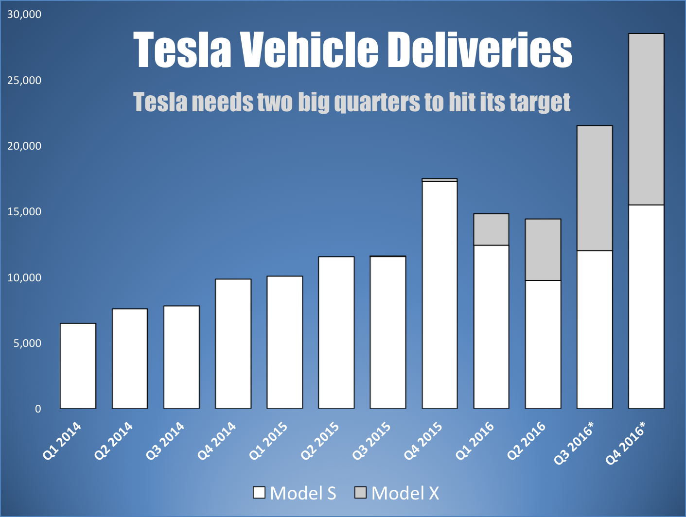 With all these factors in mind, it's likely Tesla delivers between 20,000 and 23,000 vehicles during Q3 -- leaving 27,000 to 30,000 units to be delivered in the final quarter of 2016.