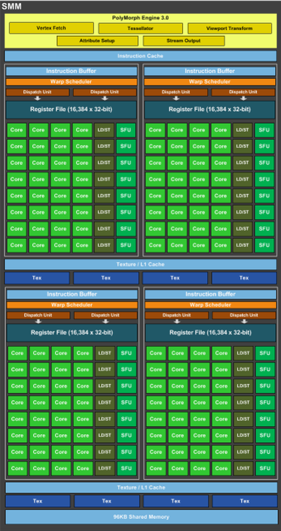 It's worth noting that with the Maxwell architecture, NVIDIA made substantial changes to the streaming multiprocessor architecture. Here's what NVIDIA said about Maxwell relative to the prior-generation Kepler architecture in its whitepaper describing Maxwell: