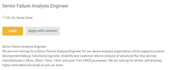 As you can see, both positions specifically distinguish between the 14 and 16-nanometer processes as part of the job requirements. Since TSMC's technology is known as 16-nanometer and Samsung's technology is known as 14-nanometer, my guess is the company has actually followed through and developed non-trivial chips on both technologies.
