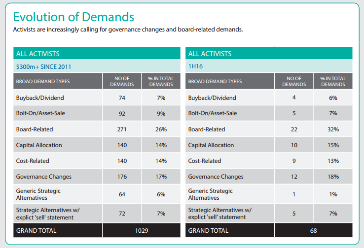 Activistmonitor's findings cover North American shareholder activism in the first half of 2016. The company reports that initiatives from nontraditional activists rose from 26% of total observed campaigns in 2015 to 38% of total observed campaigns in 2016 so far.