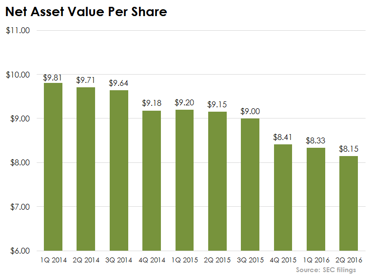 One condition of the proposed settlement is that Fifth Street Finance will receive a $1 million fee waiver for 10 consecutive quarters starting in January 2018. Though good for shareholders at first glance, note that the fee waivers tally to $10 million of total future benefits, offset by $9.7 million of additional expenses incurred by Fifth Street Finance due to lawsuits and an investigation by the SEC in the last nine months. One can thus consider it future payback for expenses in the here and now.