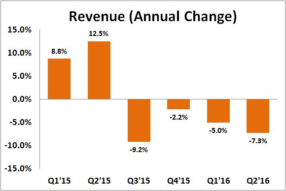 The softness in customer spending that started in early 2015 didn't fully take hold until the third quarter of last year, when the company reported an annual revenue decline. The prevailing theory is that customers have too much 3D printing capacity on hand, and it's slowing demand for new printers.
