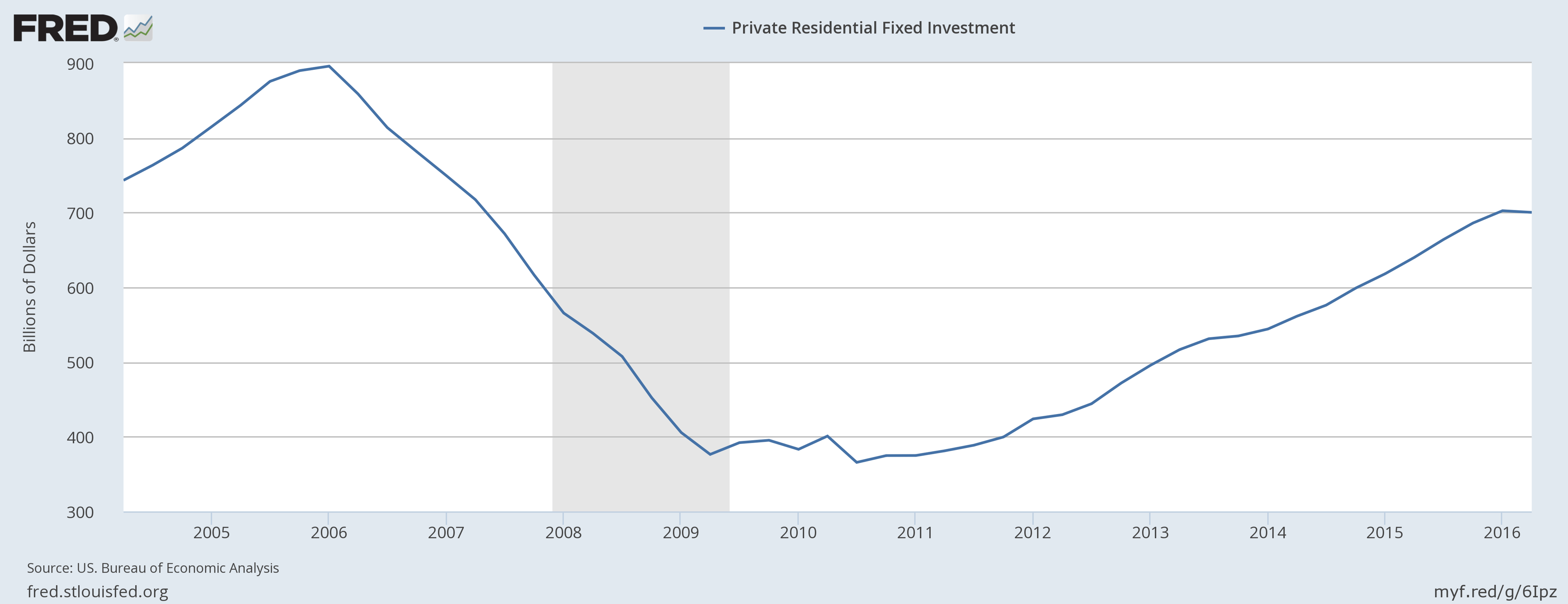 Annual spending on residential real estate. Data source: Federal Reserve Economic Data.