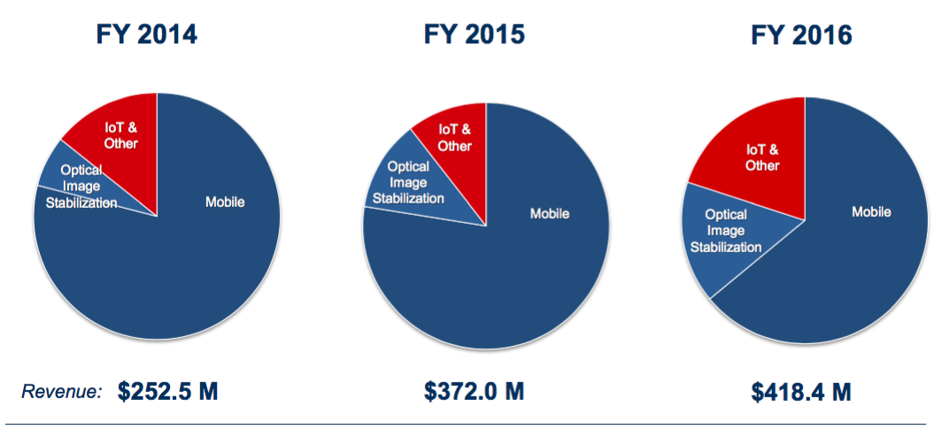 InvenSense has expanded both its Internet of Things (IoT) and its optical image stabilization (OIS) revenue over the past few years.
