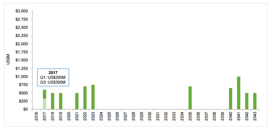 Teck's debt due dates were front-end loaded. Image source: Teck Resources.