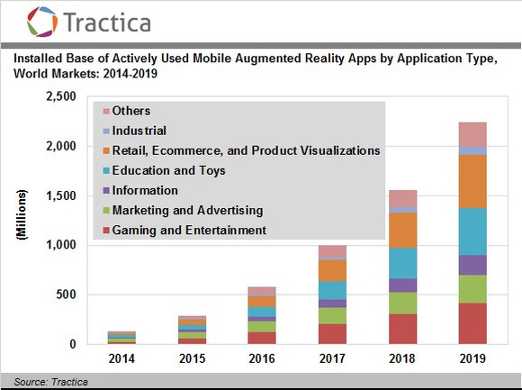 His optimism could certainly pan out for HiMax. Here's how much the mobile AR installed base is expected to grow over the next few years: