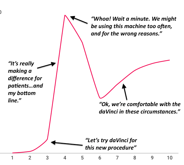 Over time, I've noticed an adoption curve that looks something like this, from the point of view of medical professionals.