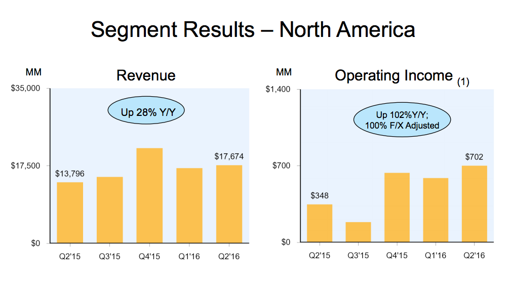In addition, profit margins are increasing in North America, so operating income is outgrowing revenue in this segment. This has clear positive implications when it comes to company-level profit margins.
