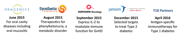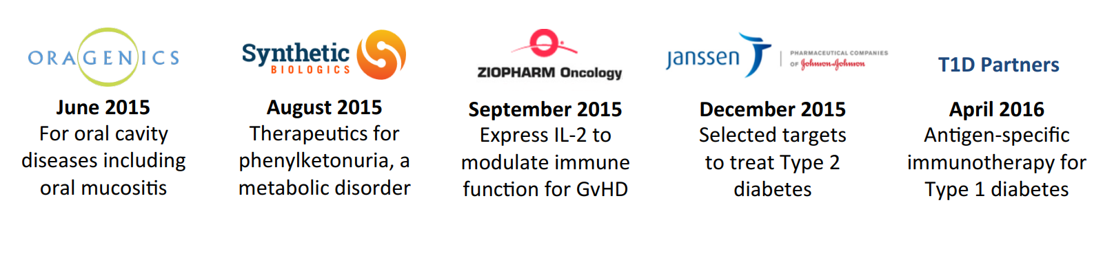 Given the disproportionate coverage of technology platforms being developed or commercialized by Intrexon, you may want to pay more attention to the ActoBiotics platform.