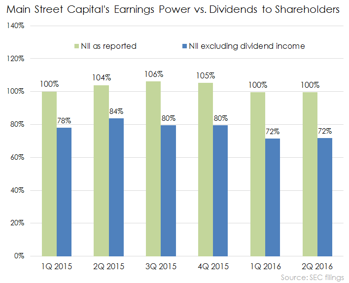 Looking at tables in its filings, it becomes clear that dividend income is perhaps less diversified than investors might prefer. The five companies that paid the largest dividends back to Main Street Capital collectively made up 57% of its dividend income in the first half of 2016.