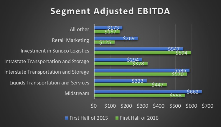 The chart below shows the performance of Energy Transfer Partners' segments through the first half of this year: