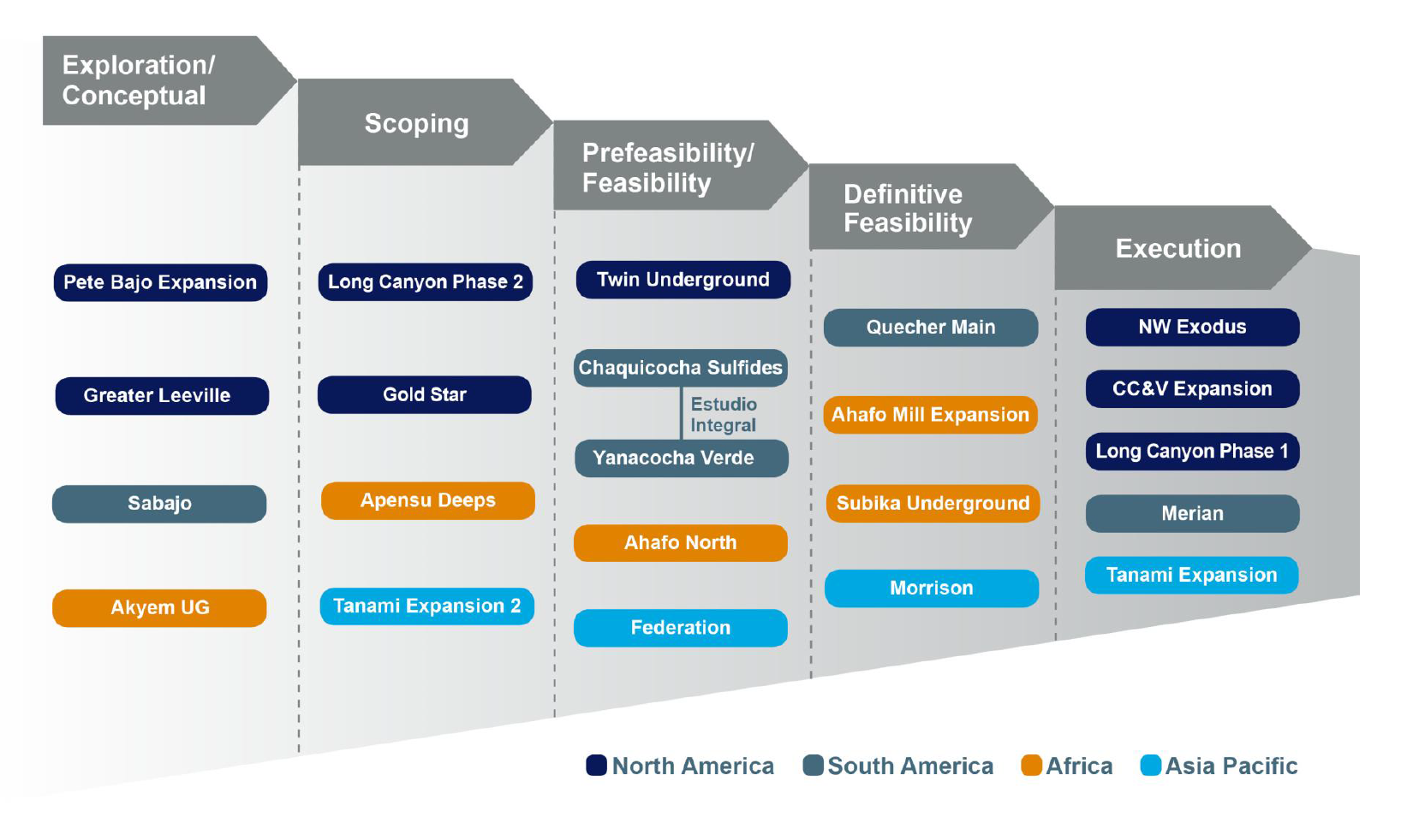Therefore it's imperative to have a strong project pipeline, which ensures that as mines are retired, new ones are ready to take their place. This is another of Newmont's strengths.