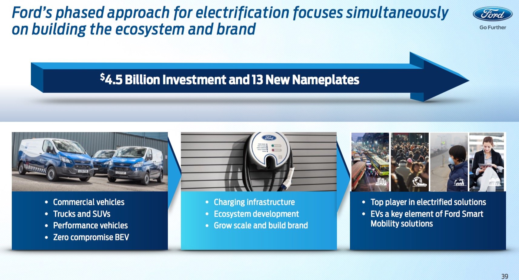 What's that mean? It means that Ford will focus its electrification efforts on highly profitable market segments where Ford has a strong position. That will help it build expertise and manufacturing scale that in time will make it cost-effective to bring electrified drivetrains to the rest of its lineup, along with an infrastructure to support those vehicles, all while building market awareness with some of Ford's most popular and visible products.