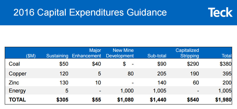 Now, that said, Teck's spending plans for 2016 show a slightly different picture than you might expect.