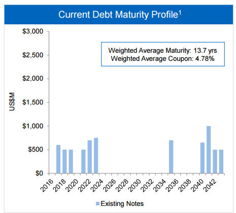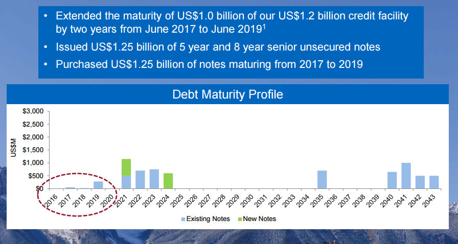 But Teck has been able to shift that around a bit, and now its maturities look like this: