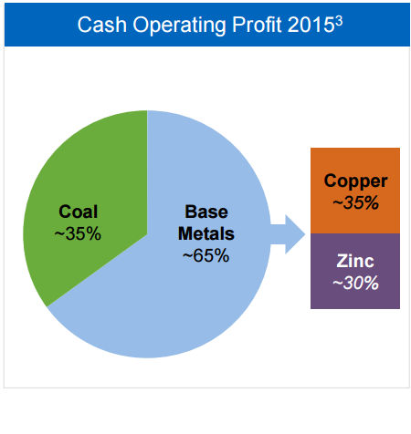 The next graphic, however, is more important to the company's long-term story today. The pie chart shows that steelmaking coal accounted for about 35% of cash operating profit last year, with zinc and copper splitting the rest. So Teck is diversified across three primary commodities.