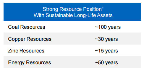 The company has enough coal to last 100 years. That's followed up by oil at 50 years. So while the oil investment is putting a strain on the company today, it should pay dividends for decades to come. Moreover, it adds an important fourth commodity to the portfolio well before the reserve life of the miner's copper and zinc businesses become a concern. It hasn't been a smooth trip, and there's still more time to go, but Teck appears to be moving in a good direction and doing so in a financially prudent manor.
