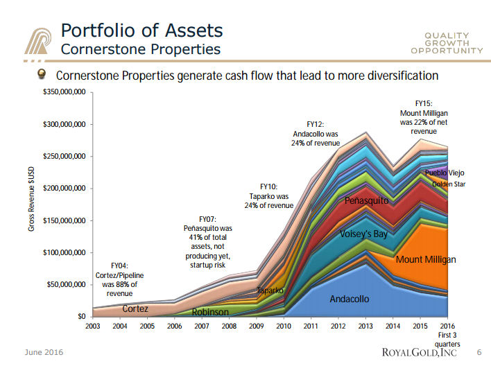 To give you an idea of what this means, in 2015, during the depths of the gold and silver downturn, Royal Gold was able to increase its reserves by just over 20% through a series of streaming deals with cash-strapped miners -- like the $610 million deal it inked with Barrick and its Pueblo Viejo Mine.